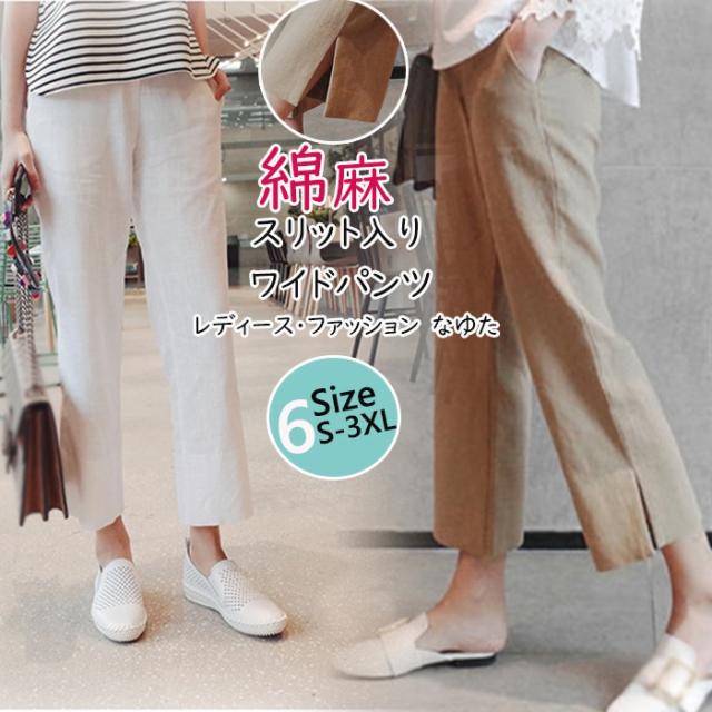 サイドスリット 綿麻 ワイドパンツ レディース ボトムス パンツ リネン混 7分丈 パンツ コットン ナチュラル ゆったり シンプル 大人 上の通販はau Pay マーケット レディース ファッション なゆた